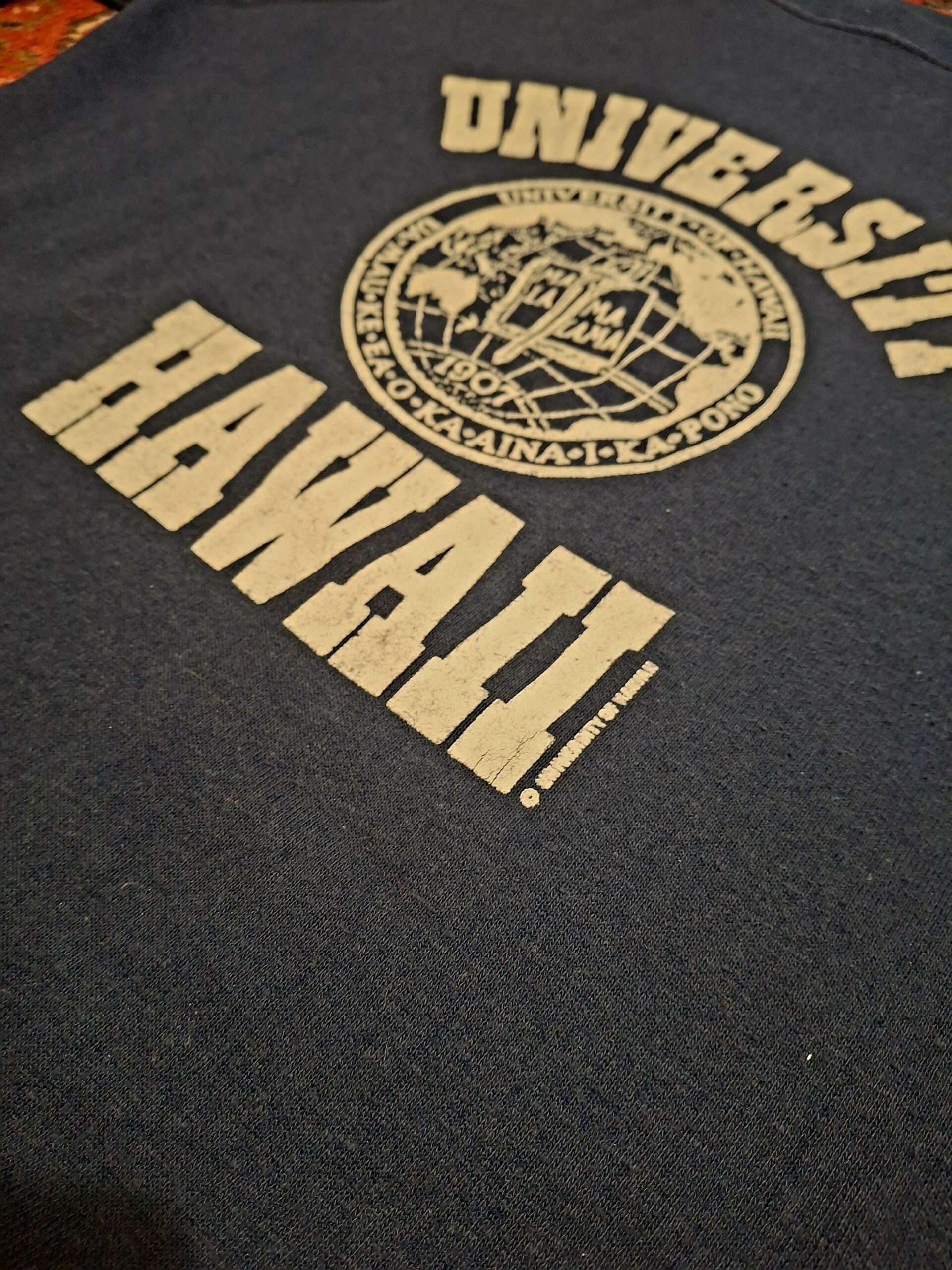 sweatshirt vintage de l’université d’Hawaii tag Tultex size M mais fit plus comme un S ,épaules raglantes, impression en feutre. pas de tâches, pas de trous très bon état.